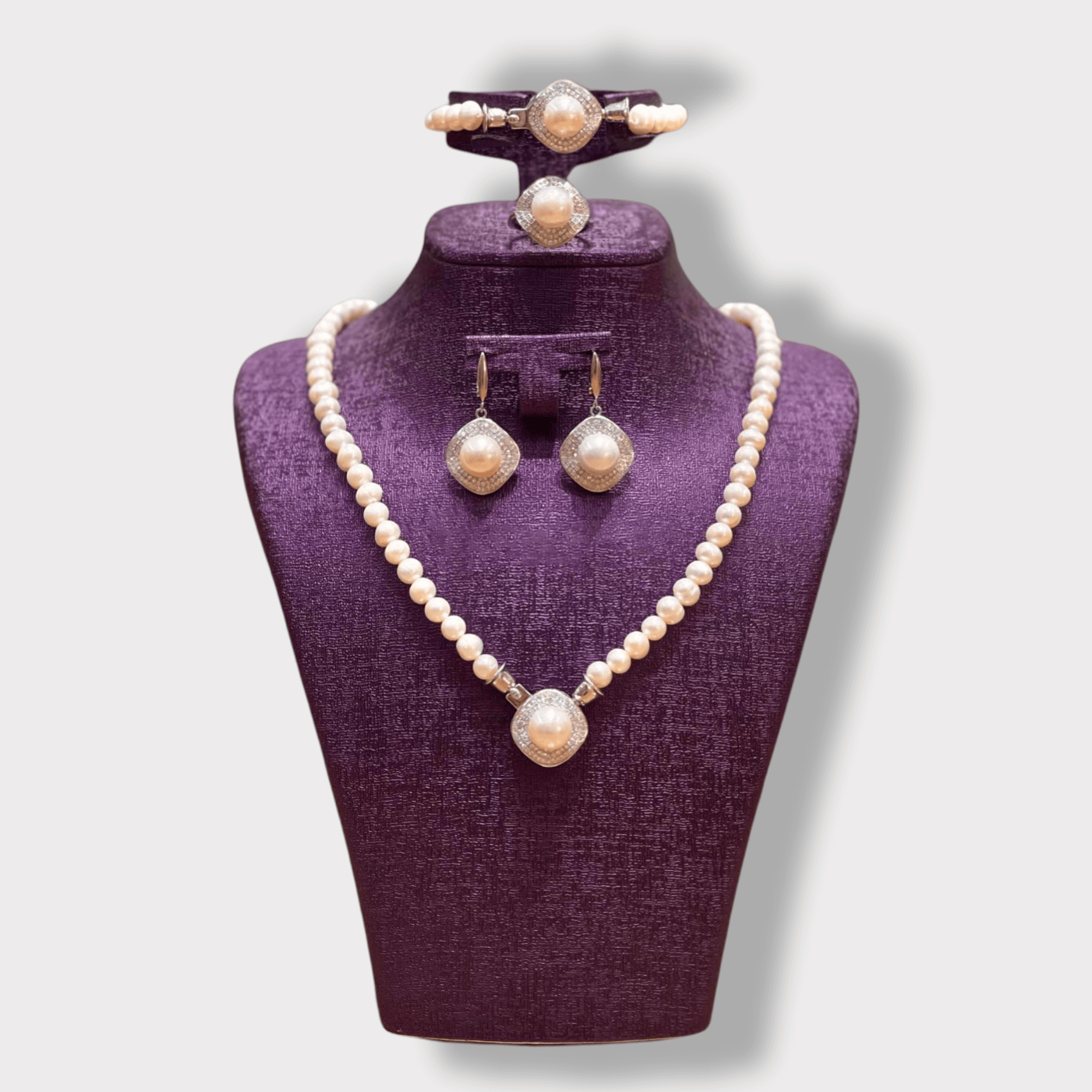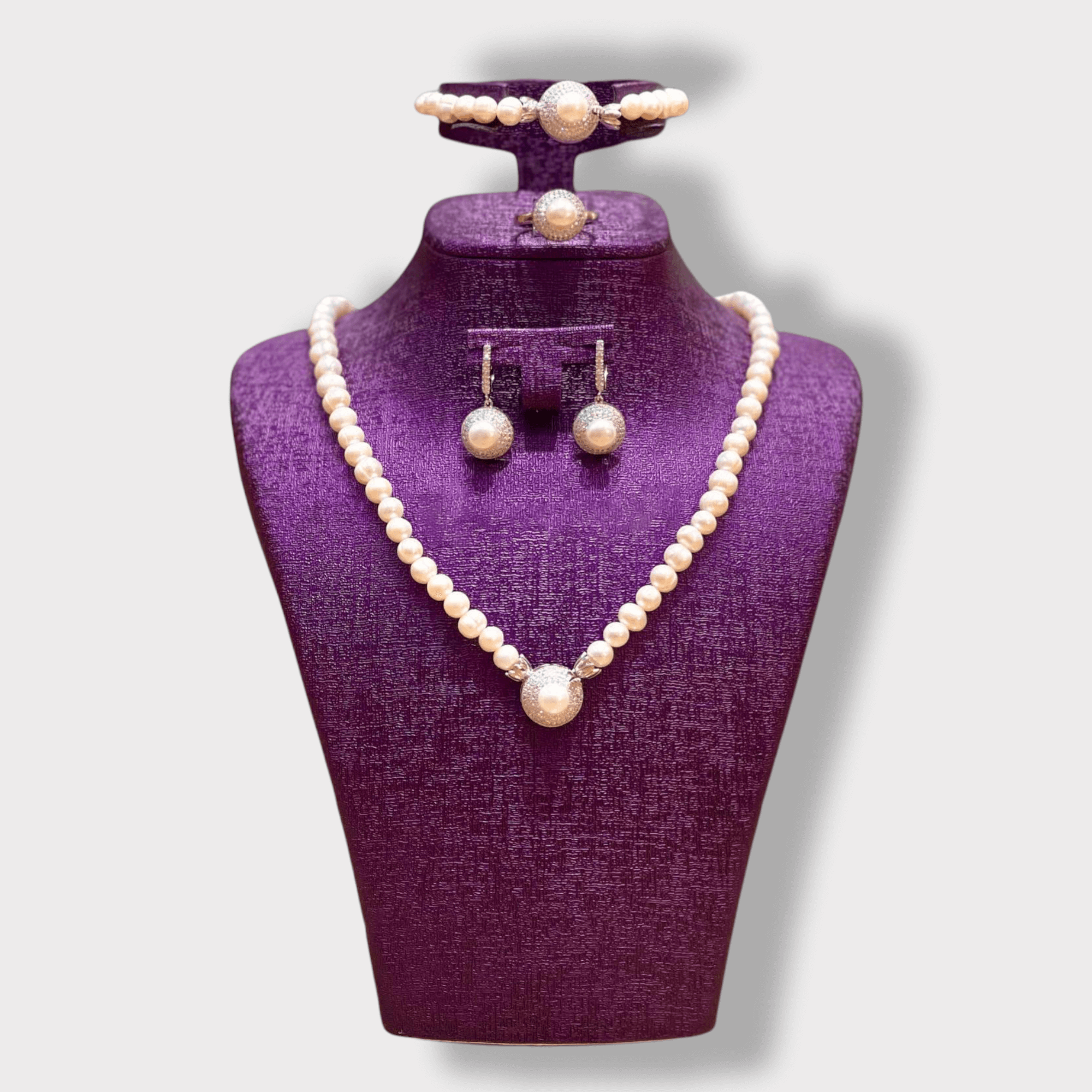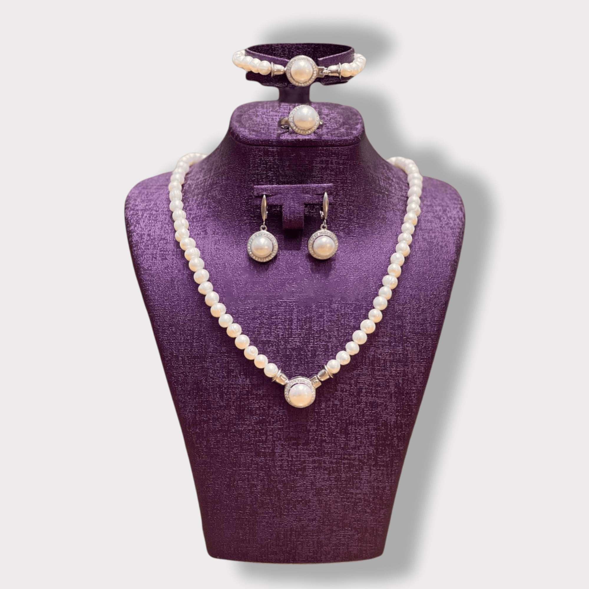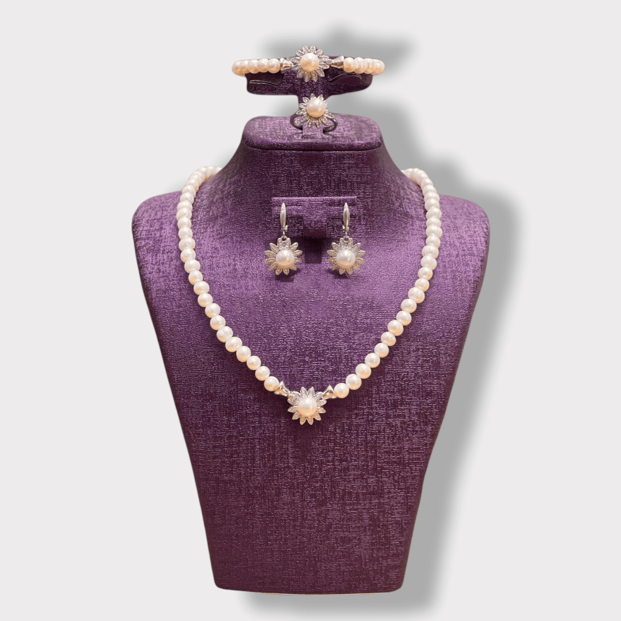 4-Piece Jewelry Set for Women, White Color Pearl –Matching Necklace & Earrings Set, Special Occasions