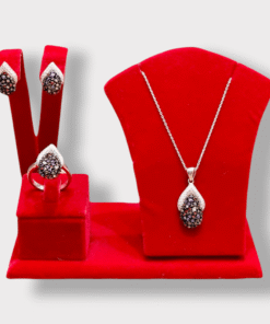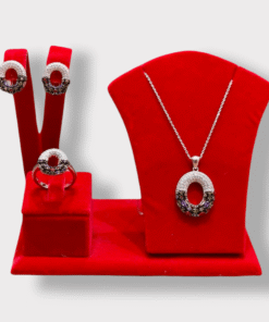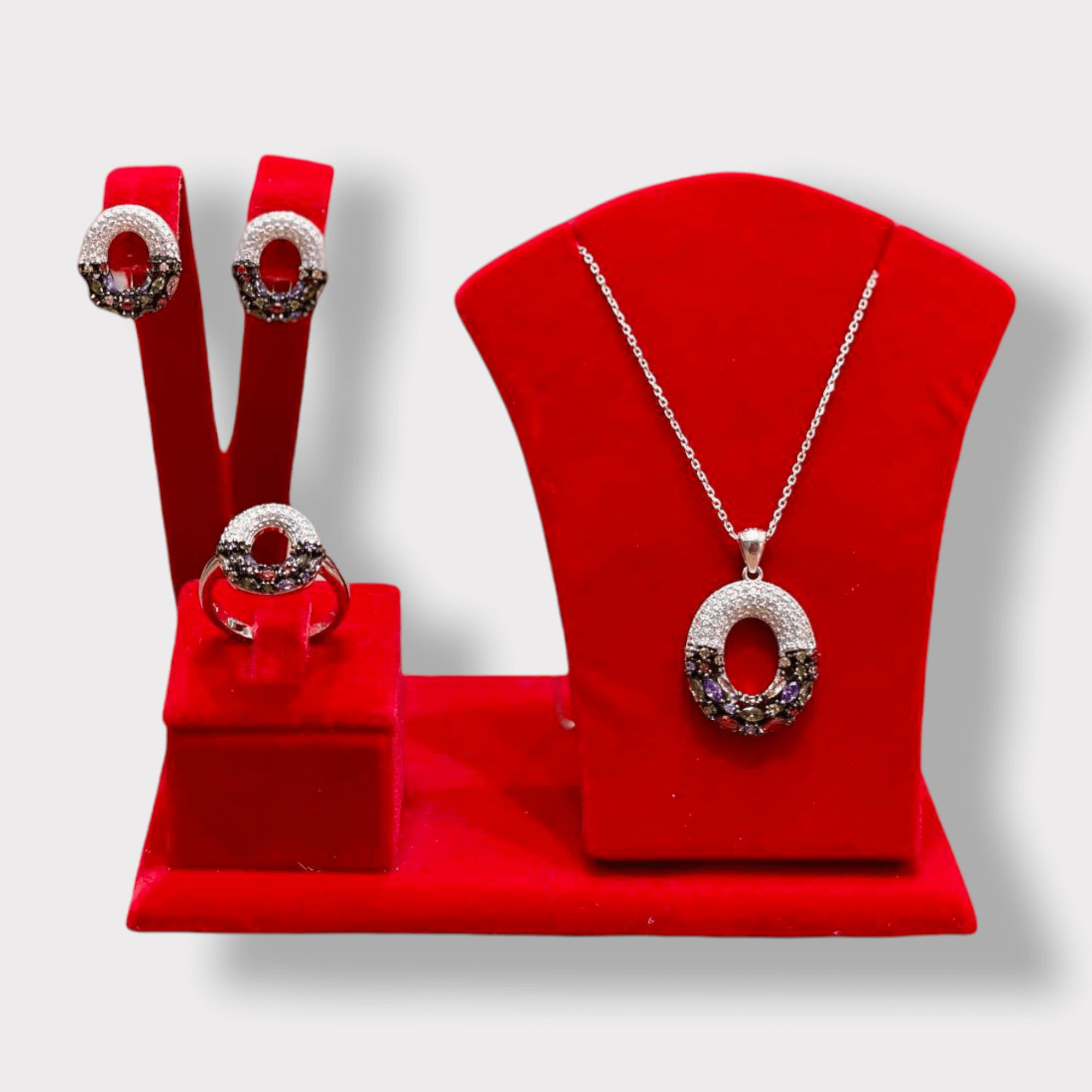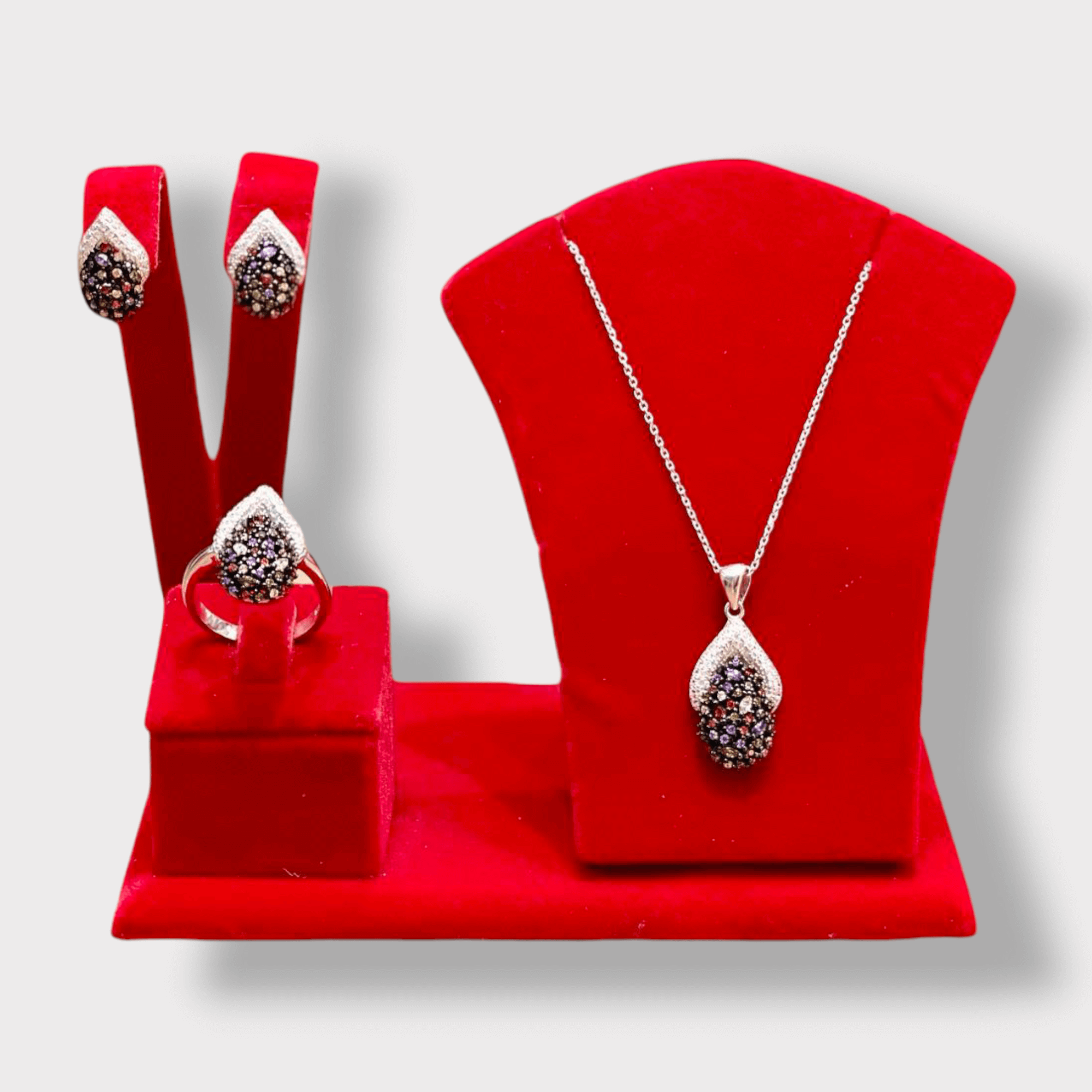 Pretty Silver 3 piece Bridal Jewellery set with Necklace, Earrings, Ring, Contemporary Jewelry Bride.